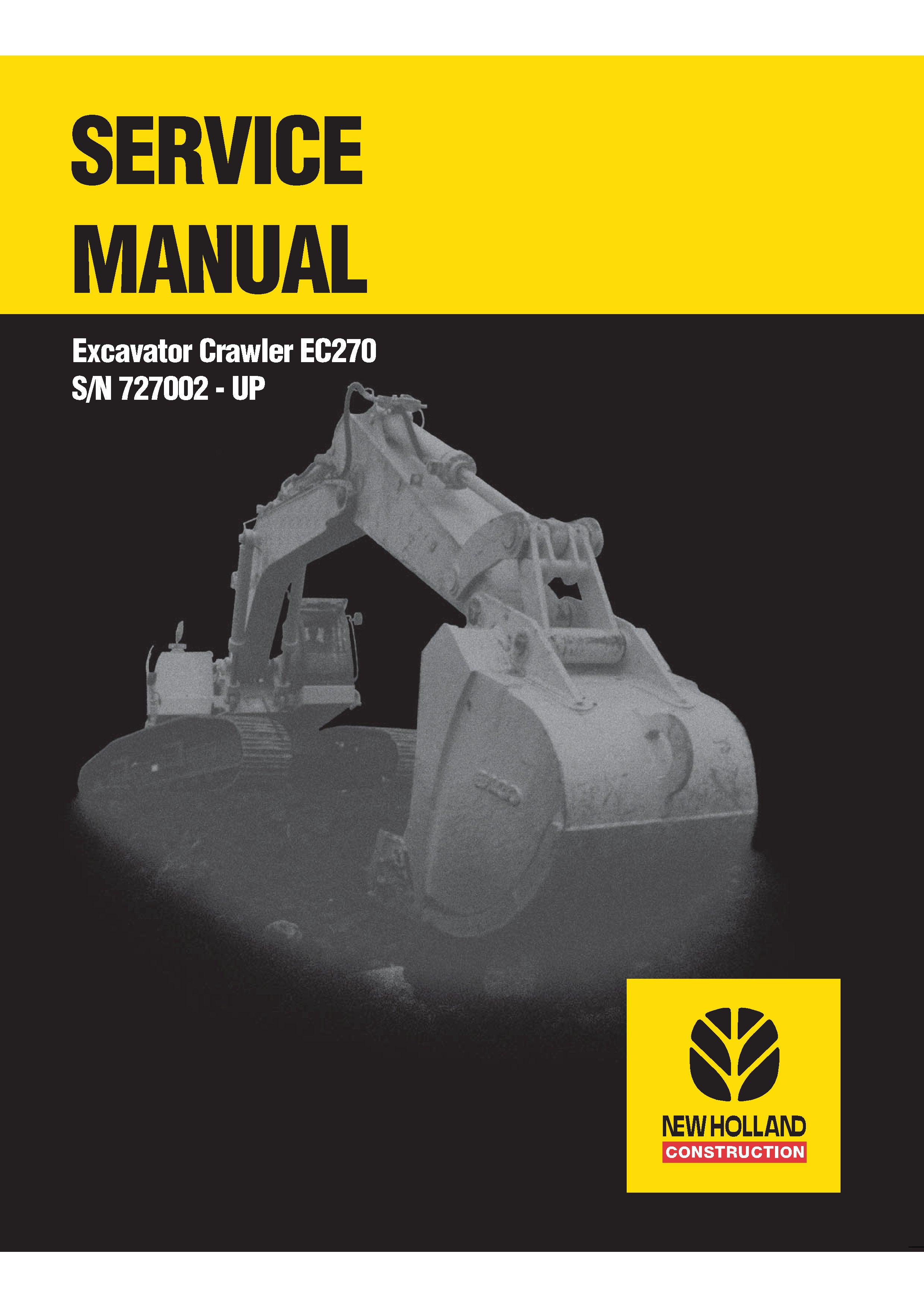 It is Complete Original Factory for New Holland EC270 Crawler Excavator. Covers all the service and repair information about New Holland EC270 Crawler Excavator. The information in this manual covers everything you need to know when you want to service and repair New Holland EC270 Crawler Excavator.