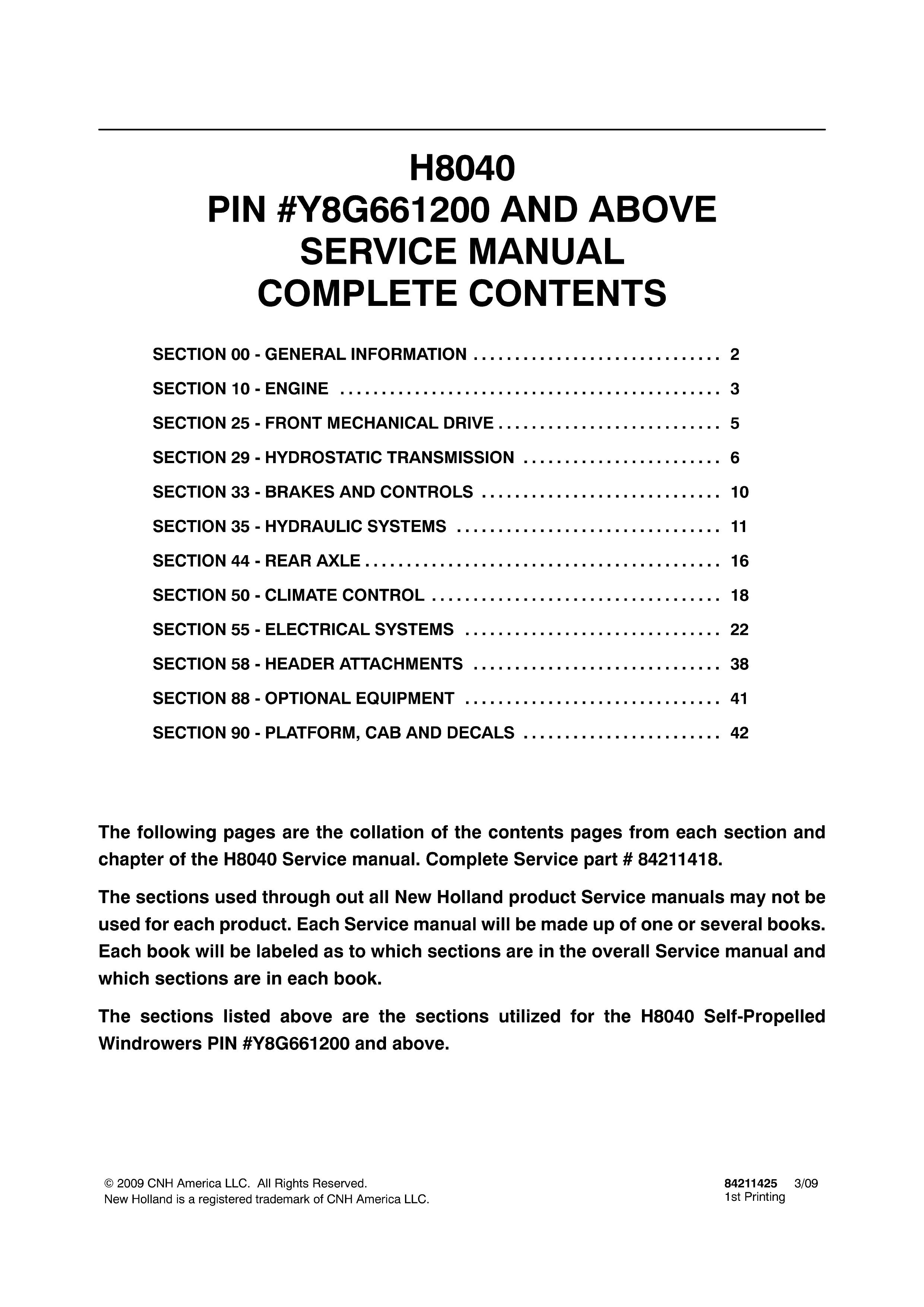 Download New Holland H8040 Self-Propelled Windrower Service Repair Manual 84211418