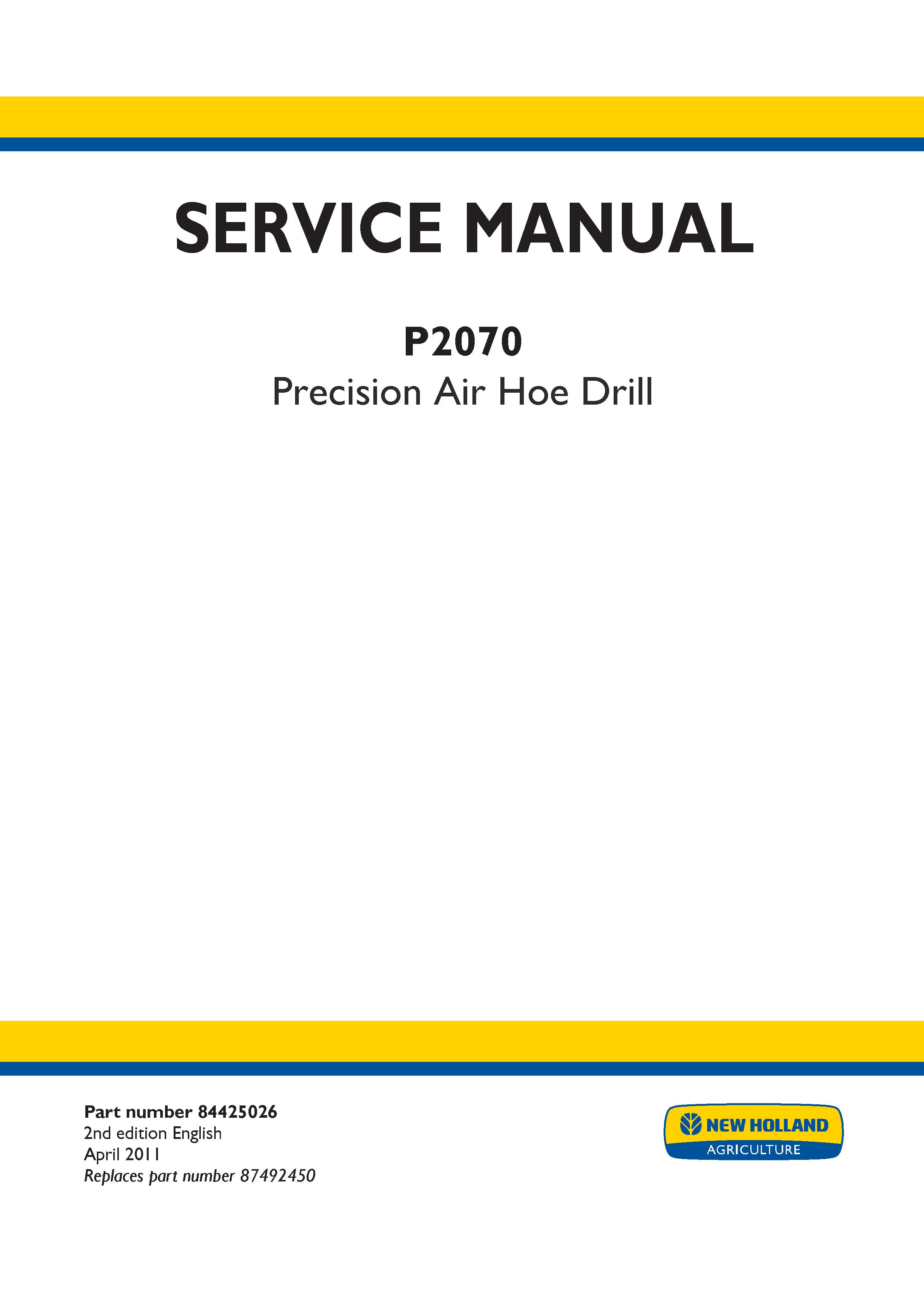 Download New Holland P2070 Precision Air Hoe Drill Service Repair Manual 84425026