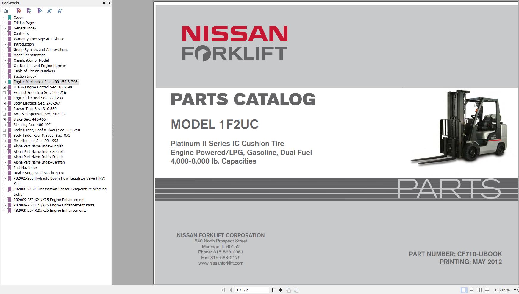 Nissan 1F2UC Forklift Parts Manual - PDF Download