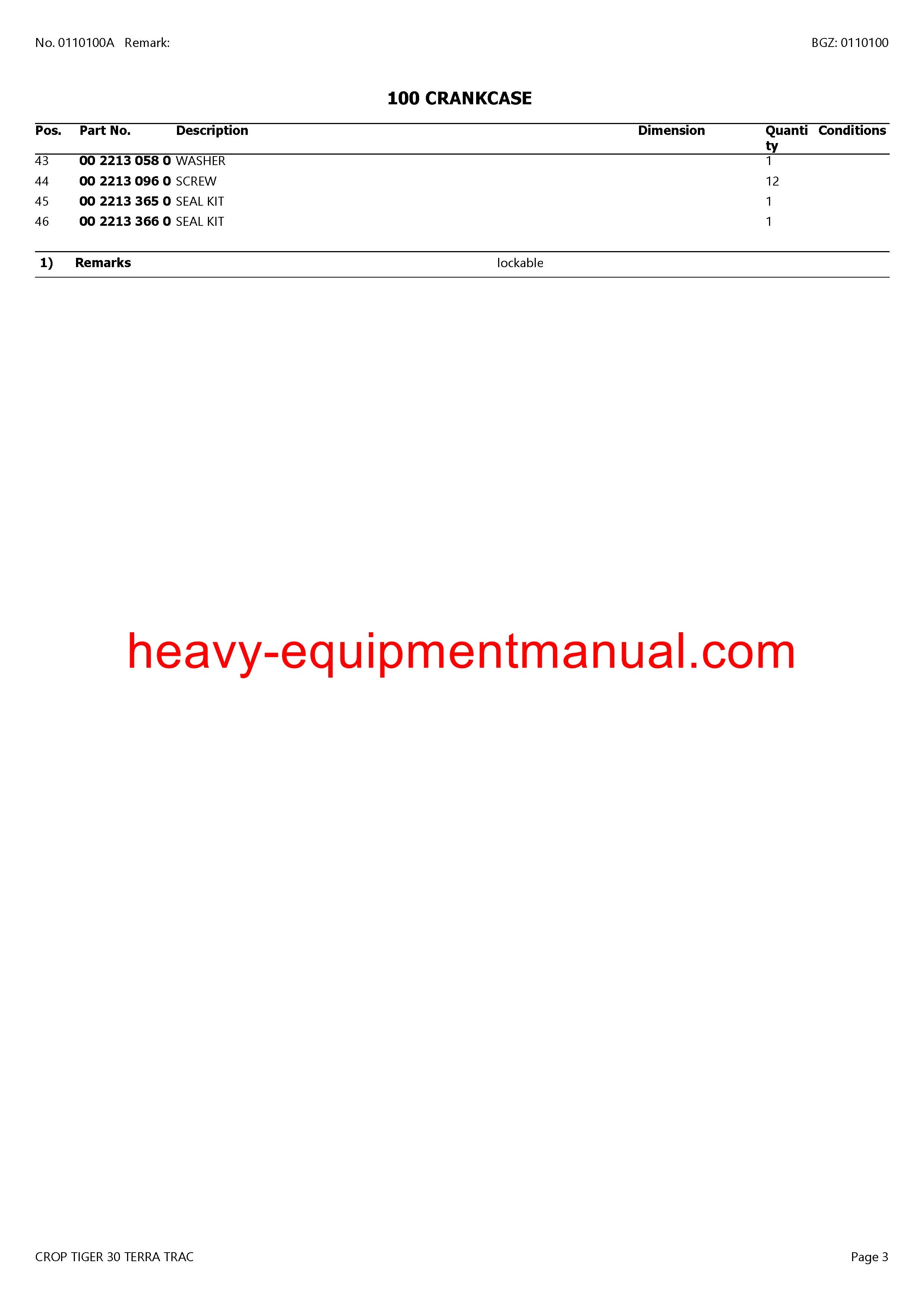 PDF Claas 30 Crop Tiger Terra Trac Combine Parts Manual