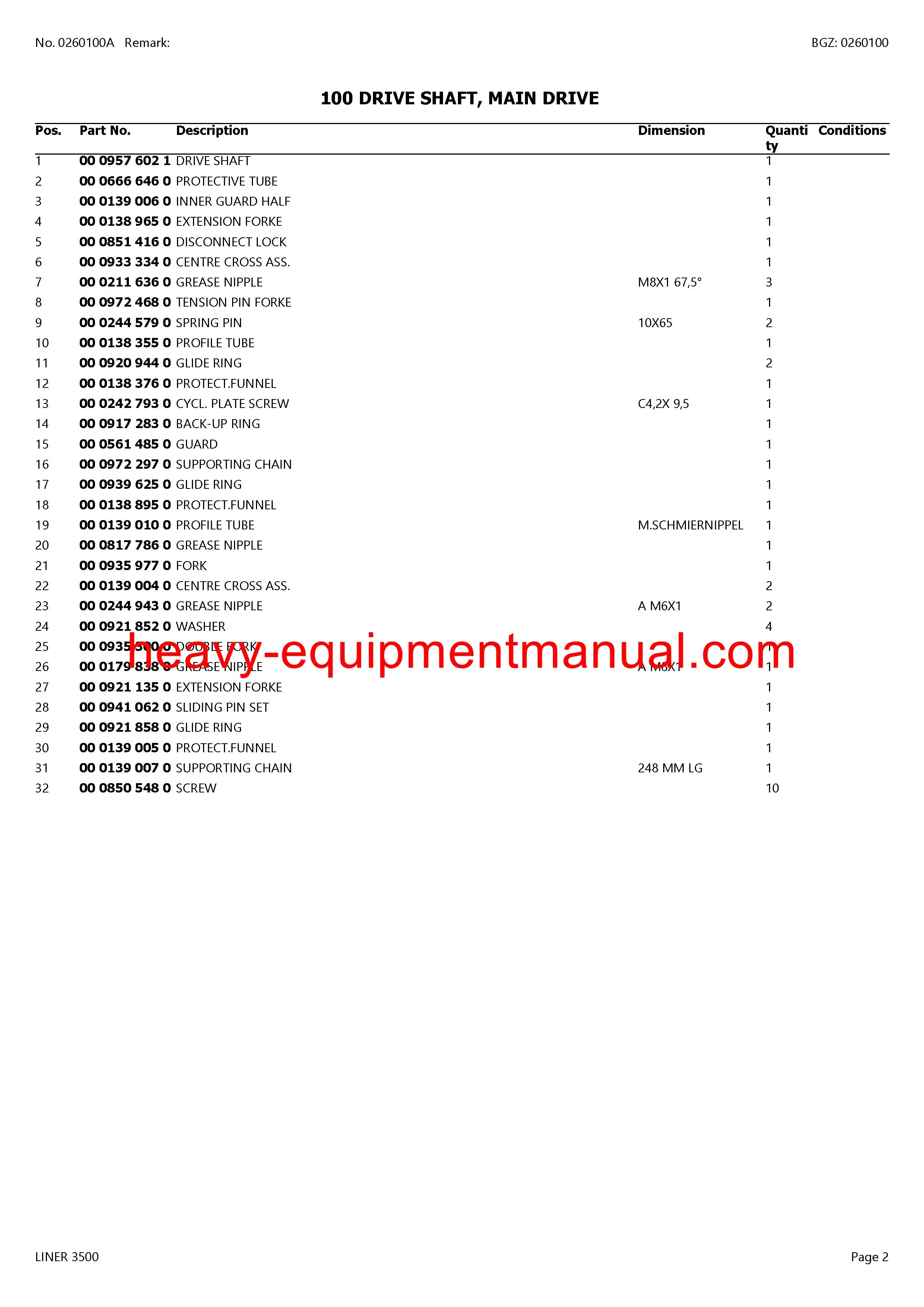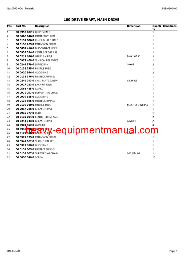 PDF Claas 3500 Liner Swather Parts Manual