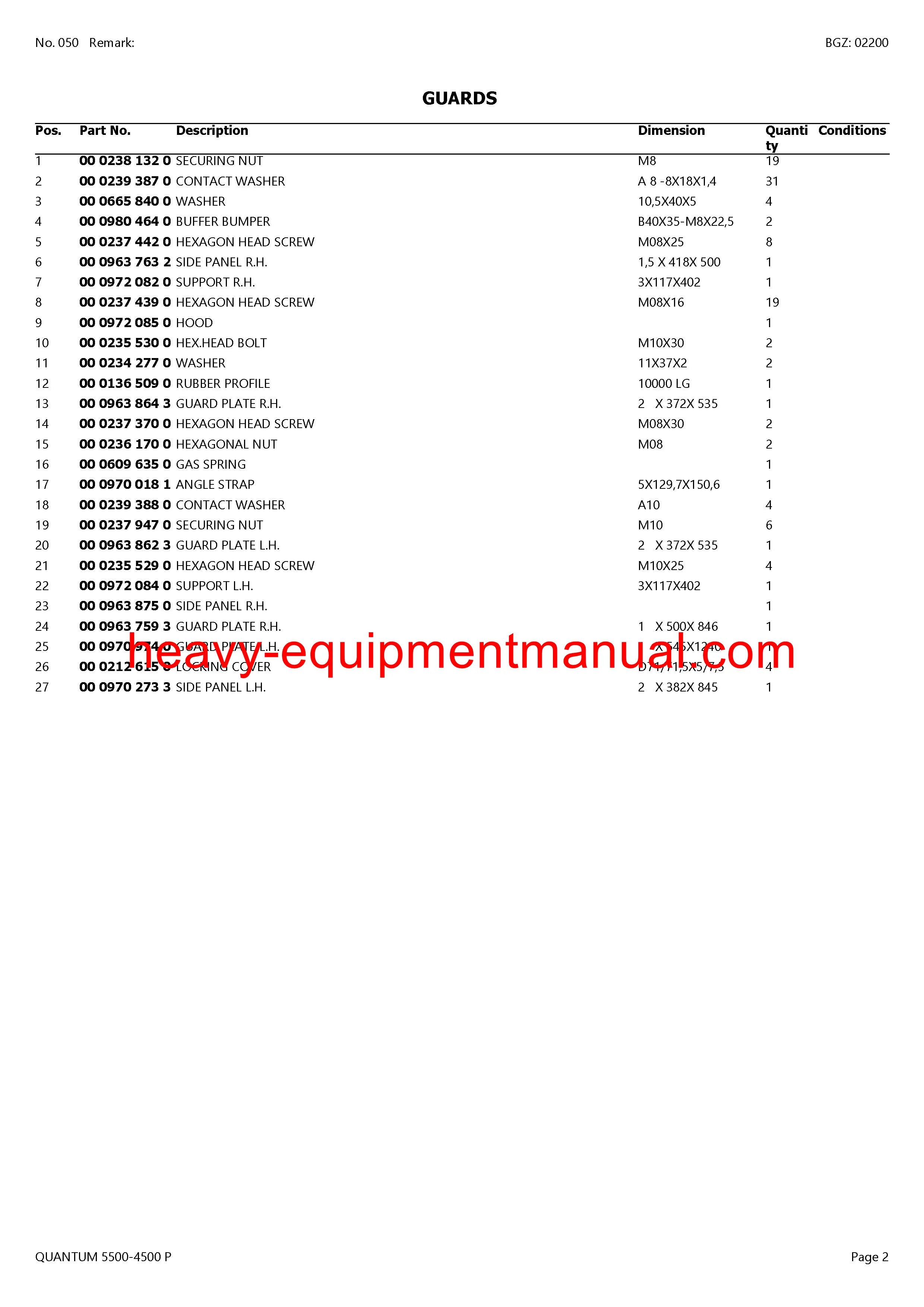 PDF Claas 5500 - 4500 S Quantum Self Loading Wagon Parts Manual