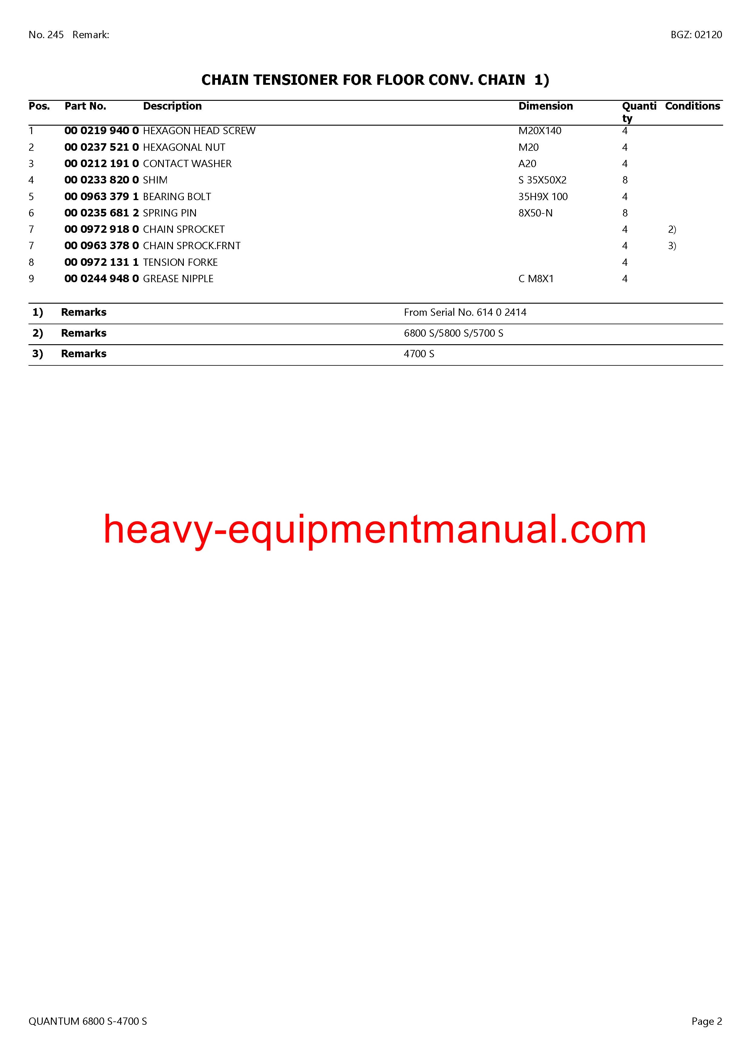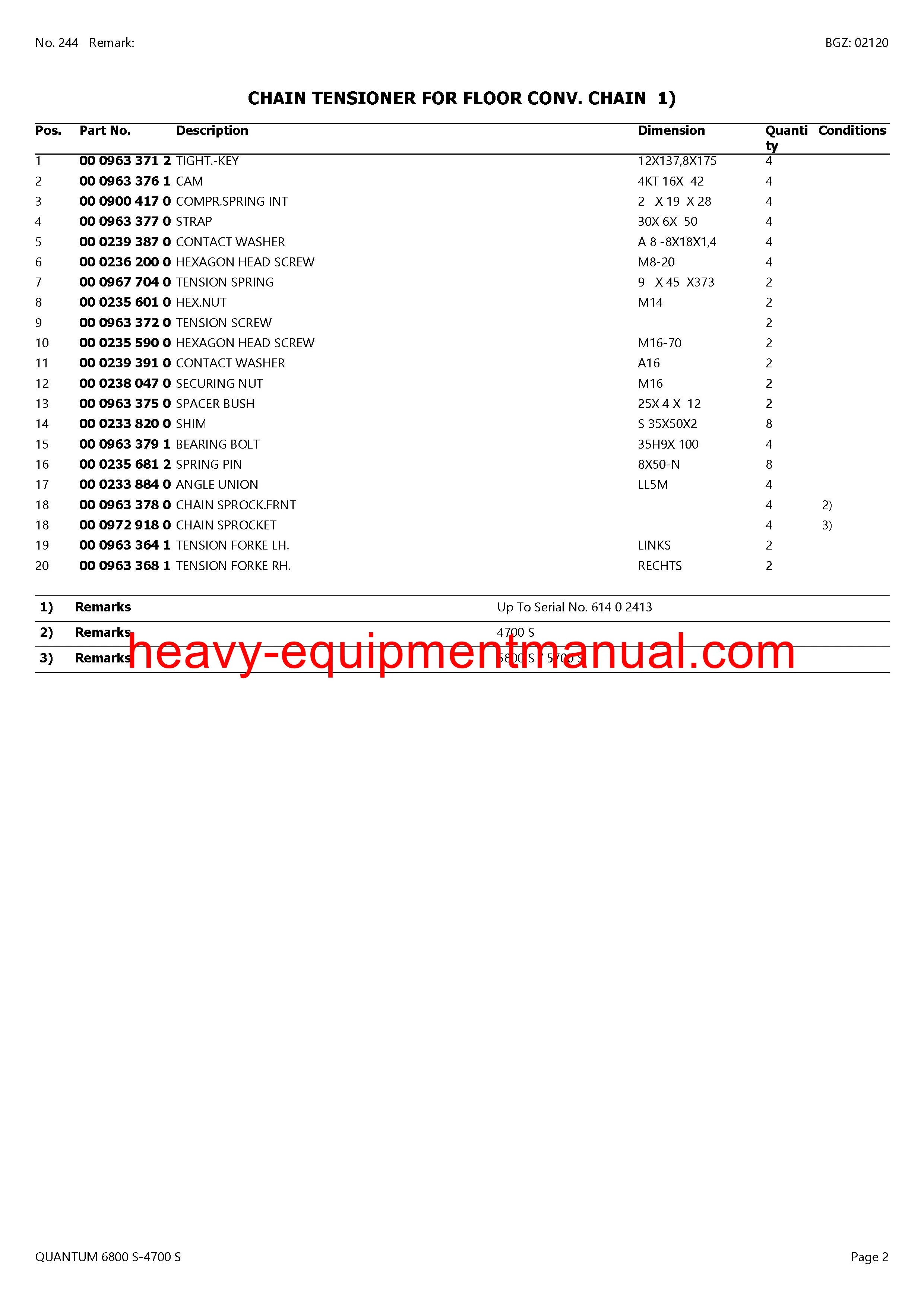 PDF Claas 6800S - 4700S Quantum Self Loading Wagon Parts Manual