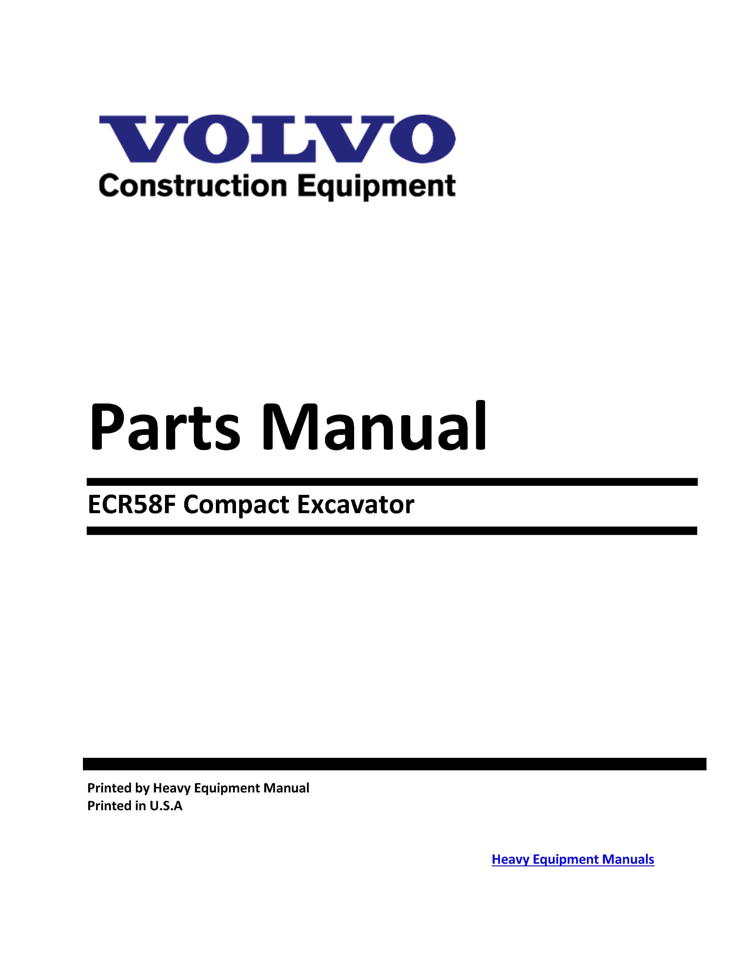 Volvo ECR58F Compact Excavator Parts Manual
